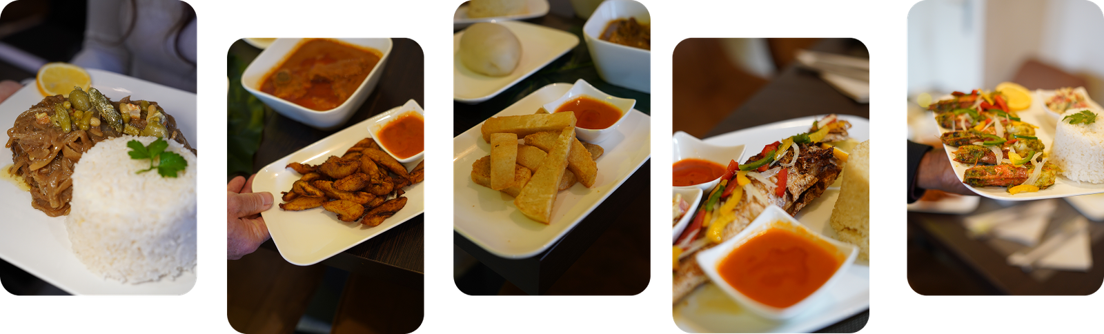 Foutou ivoirien pilé minute, poulet braisé aux épices maison et bissap glacé à l’hibiscus : une sélection de classiques africains, préparés chaque jour avec des produits frais et des épices authentiques.